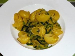 Un immediato scan fotografico mentale del mio frigo per ricordare di avere acquistato ieri al mercato del paese più vicino delle magnifiche zucchine invernali, sapete quelle belle scure che in questa stagione danno un annuncio di primavera. Mente locale su vari ritagli e avanzi e voilà la soluzione è pronta: un bel piatto unico di quelli dove la pasta è poco più che una scusa ed un accompagnamento a una bella montagna di verdure.