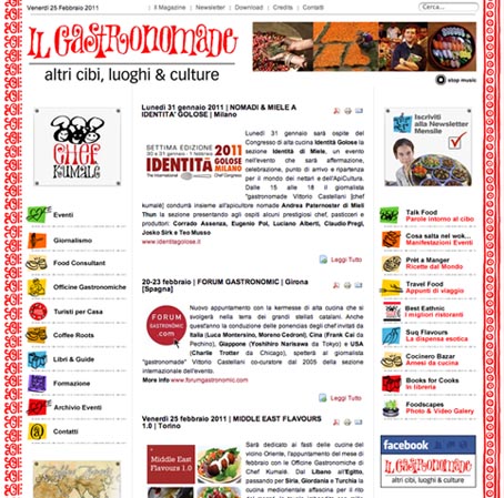 Cucina e culture dal mondo, eventi, corsi, reportages, libri di cucina e molto altro: il sito è ricchissimo di contributi interessanti e coinvolgenti inviti alla lettura.