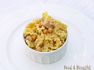 Tra le tante varianti ce n’è una in particolare che continuo a preparare ancora oggi perché nonostante la semplicità e la pochezza degli ingredienti è buonissima. Pronta in tre mosse, oggi la servo spesso fredda come insalata di pasta, perfetta per un buffet come per più rustici picnics. E’ la pasta tonno e ceci al cumino.