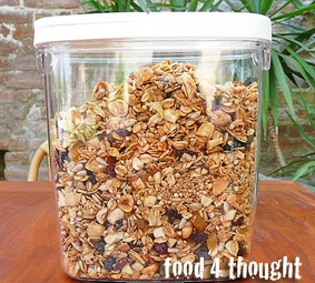Con un tot di ospiti attesi per il week-end ho pensato perciò di rimpinguare le mie scorte di muesli tostato al miele e frutta. Mi piace prepararmelo a casa perché in questo modo so con certezza gli ingredienti che lo vanno a comporre, mai uguali da una volta all’altra, senza contare che il risultato è di una squisitezza che non ha confronti. Un’altra di quelle piccole ricette semplicissime da realizzare che riescono però a migliorare la vita.
