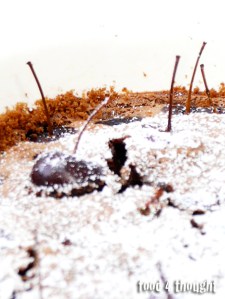 …. transitando poi dal giusto ammontare di elucubrazione (mumble, mumble!), un giro a perdifiato in dispensa alla ricerca di un degno compagno di vita, se non di un principe azzurro (e lì incontrò il cacao), ed infine una pausa di raccoglimento nel calore avvolgente del forno. Da cui spuntò così: