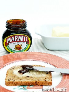 E così l’ammoremmio – che incidentalmente stava cominciando a mugugnare e a richiedere che, al posto dei miei soliti pani di pasta madre, sfornassi per i suoi toast del mattino un pane a cassetta dalla crosta soffice (fratello, per intendersi, di quello che si compra al supermarket) – ha potuto festeggiare a base di pane burro e Marmite!