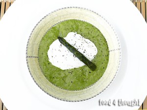 Fate scaldare delicatamente la crema di asparagi, aggiungendo la panna per legare ed evitando di portare ad ebollizione. Aggiustate eventualmente di sale.