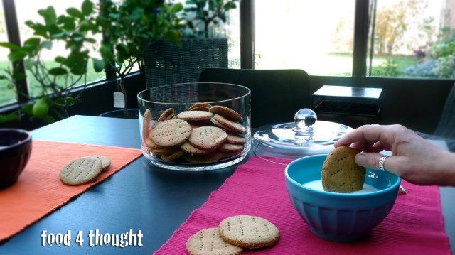 Beh, la scelta non è stata difficile, ho optato per quelli che sono forse i miei biscotti preferiti: i Digestives. Non solo hanno una quantità di burro accettabile, ma contengono anche poco zucchero e sono ricchissimi di fibre. Un bel modo sano di iniziare la giornata. Ma anche, perché no, per uno spuntino pomeridiano.