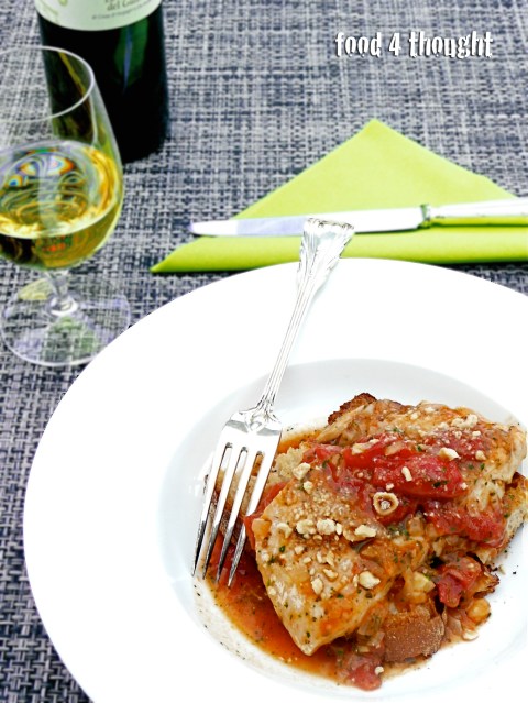 E quindi pesce e in una delle mie ricette storiche, di quelle che cucino da un numero infinito di anni e che non tradisce mai l’Halibut alla Catalana. Poi perchè catalana non l’ho proprio mai capito ma fa lo stesso. La particolarità principale di questo piatto, quella che gli da una sorprendente marcia in più, è la granella di nocciole tostate con cui viene spolverato. Ci sarà qualcosa di catalano nelle nocciole? E dire che semmai per me nocciola vuol dire Piemonte. Ma tant’è, questo è un vero classico che vale veramente la pena conoscere e gustare. Potete utilizzare l’halibut, come ho fatto io qui, ma vanno bene tutti i pesci di mare grossi dai filetti bianchi e sodi, quindi merluzzo, cernia, haddock, fate voi a seconda di quello che trovate.