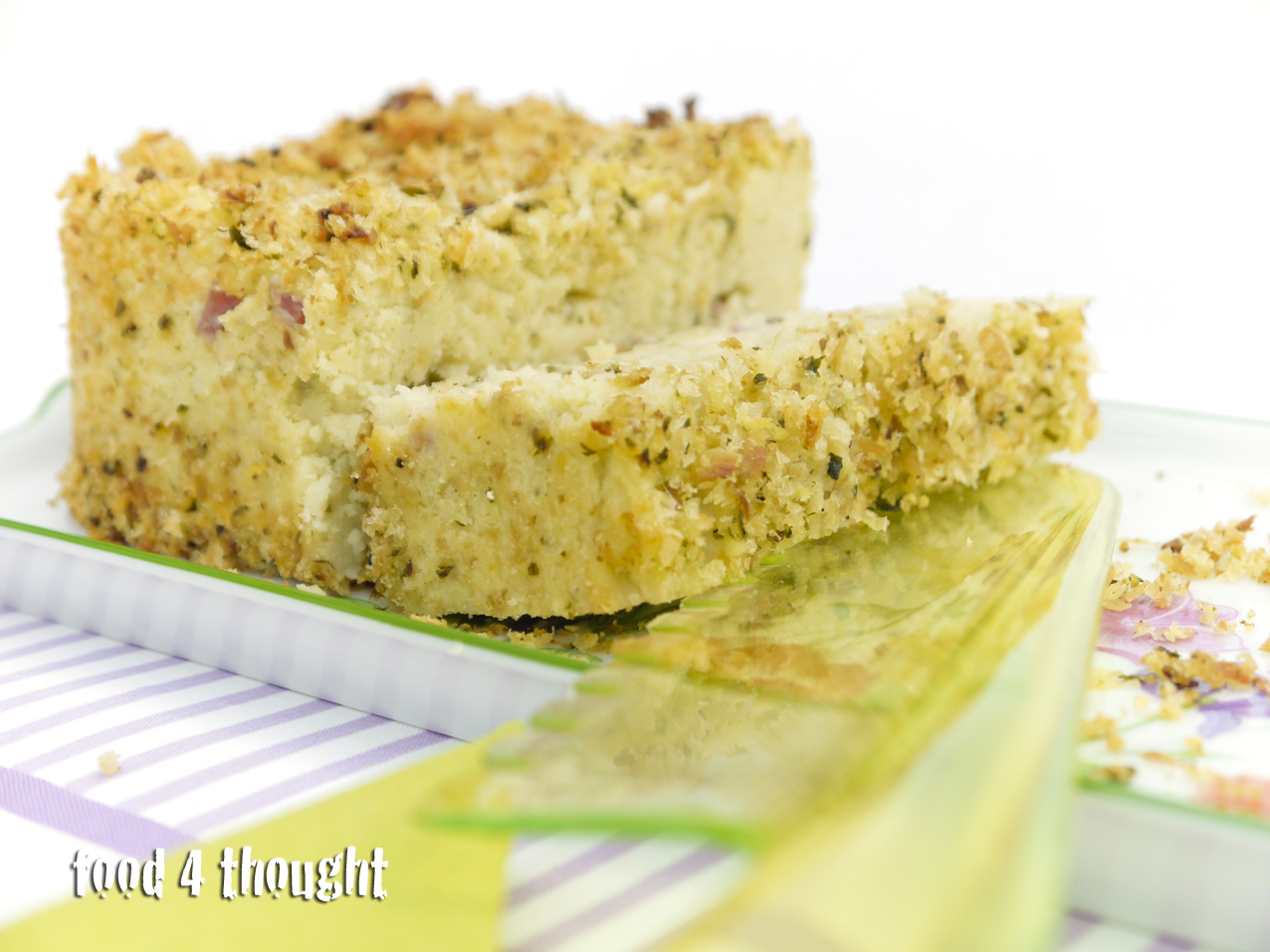 • Butter a springform baking tin and sprinkle with part of the breadcrumbs. Pour the potatomixture into it, pressing well with the back of a spoon, and level the top.Sprinkle the surface with the remaining breadcrumbs. Dot with a few knobs ofbutter and place in a preheated oven at 180 C° for about 20-30 minutes or untila golden crust is formed. Remove from oven and let stand for at least 10 minutes. Gently pass the blade of a knife all around the edge of the cake, and unhingethe side of the tin, gently removing it.