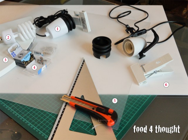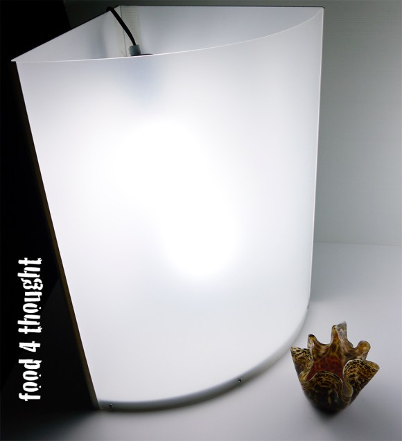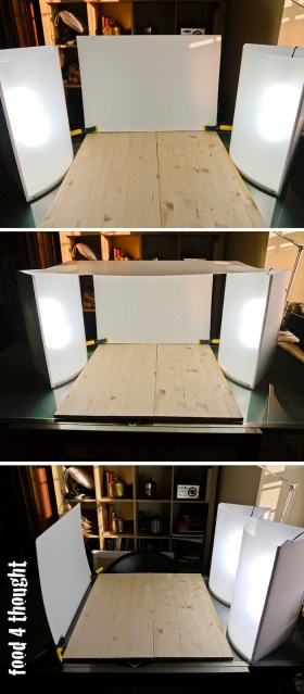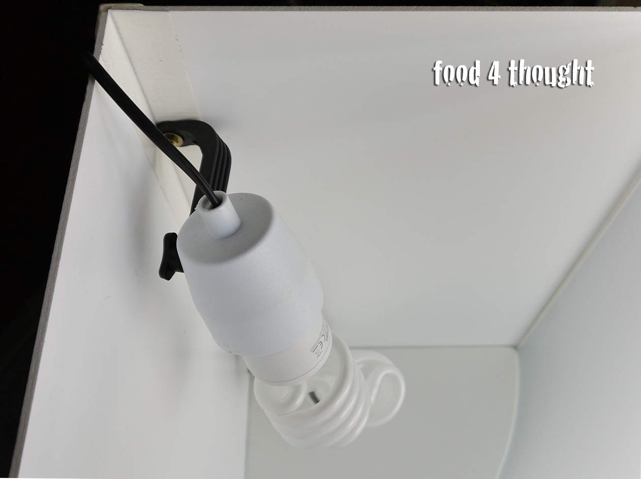 Già, già, quella che vedete qui è stata la produzione di un week-end invernale quando con l’ausilio del mio prode assistente (l’Ing, naturalmente) ho finalmente messo in pratica un’idea che mi ronzava per la testa da un po’: risolvere il problema atavico del blogger, ovvero come fotografare decentemente il cibo in quei bui pomeriggi invernali e, ancora peggio, la notte. Senza naturalmente né svenarsi economicamente né impegnare una porzione notevole del soggiorno con ingombranti luci, cavalletti, ombrelli e via discorrendo.