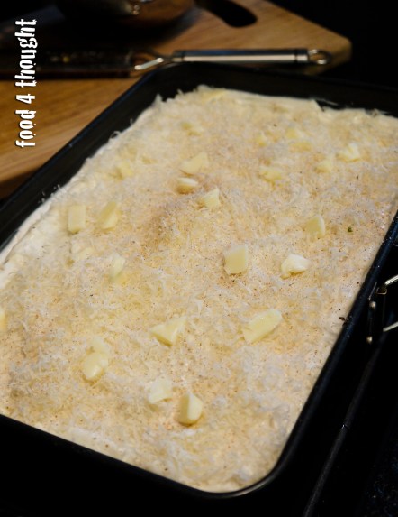 - Bechamel sauce (made with 500 ml milk, a knob of butter, 2 tbsp flour, salt, nutmeg)