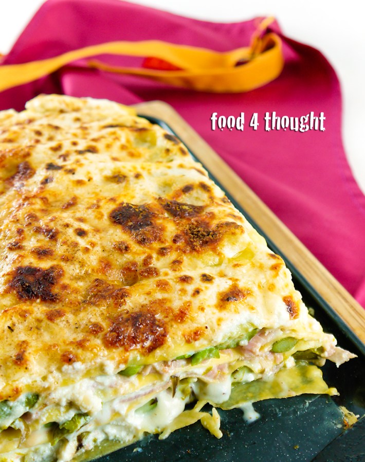 Questa mia ha forse un difetto, che però è anche un suo pregio: è strettamente stagionale. Per questo la chiamo Lasagne di Primavera. Uno degli ingredienti indispensabili sono infatti gli asparagi disponibili come si sa per un periodo limitato (beh, almeno se come me ci tieni, per quanto possibile, che la tua cucina sia a km 0!). Ma tutto quello che non si può avere ogni giorno assume un carattere di evento, diventando un qualcosa di speciale, non pensate?