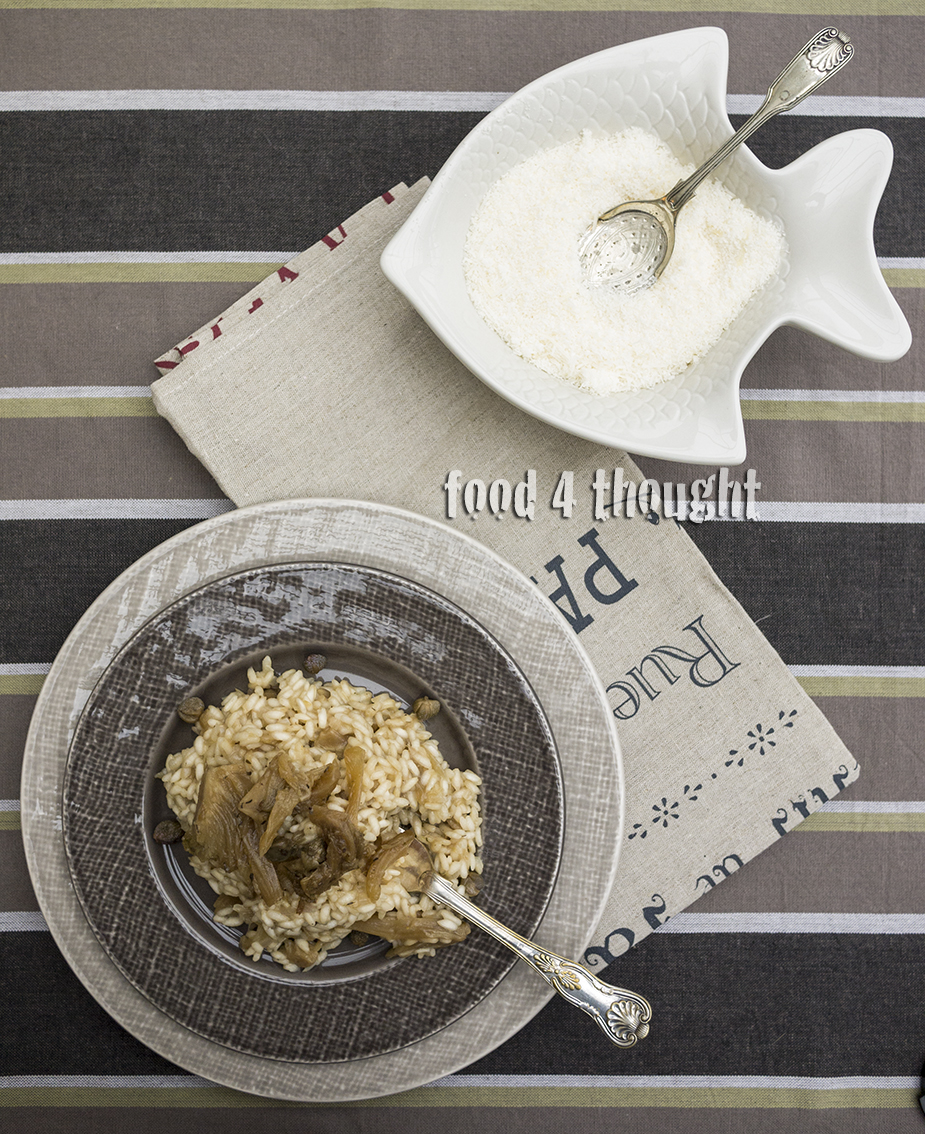 Pazienza, mi consolo sapendo che questo è un clima ideale per la cucina, se non per la fotografia 🙂 Perciò perché non un bel risotto? Buono, squisito e perfetto in questa atmosfera. In più, alla faccia della poca luce, mi da anche l’occasione di provare a mettere in pratica i consigli di Barbara sul come fotografare al meglio il riso, uno dei piatti notoriamente meno fotogenici del mondo. Ditemi voi se il risultato è soddisfacente. A me, considerando che il risotto è sempre stato la mia bestia nera da fotografare – tanto che normalmente mi limito a mangiarmelo 🙂 – queste immagini non dispiacciono …