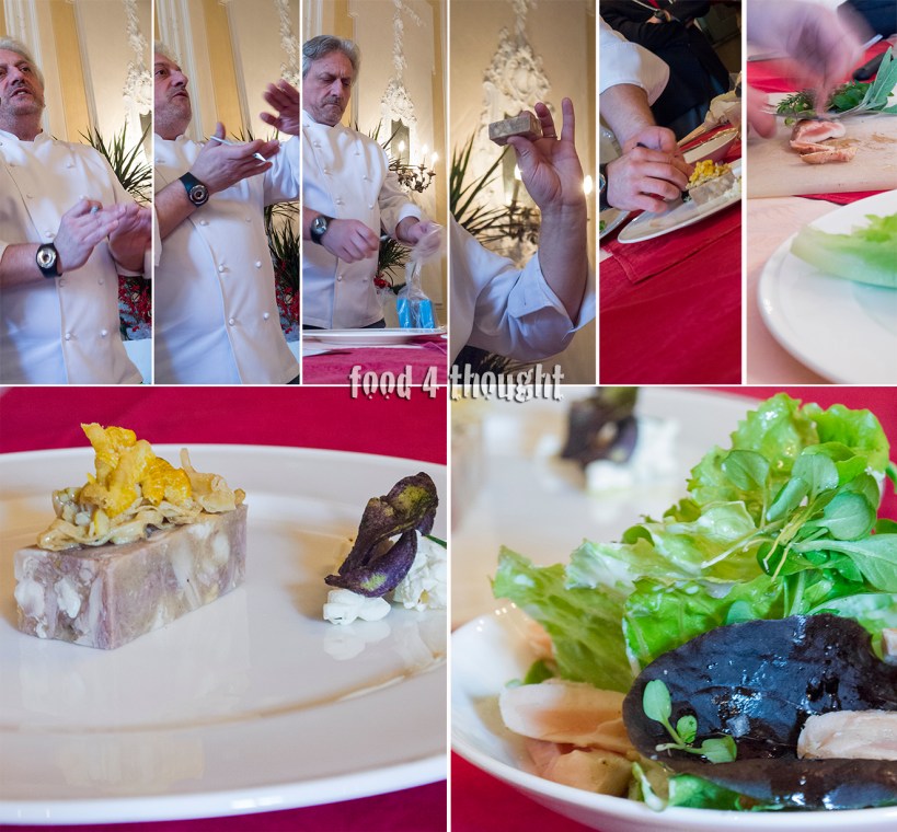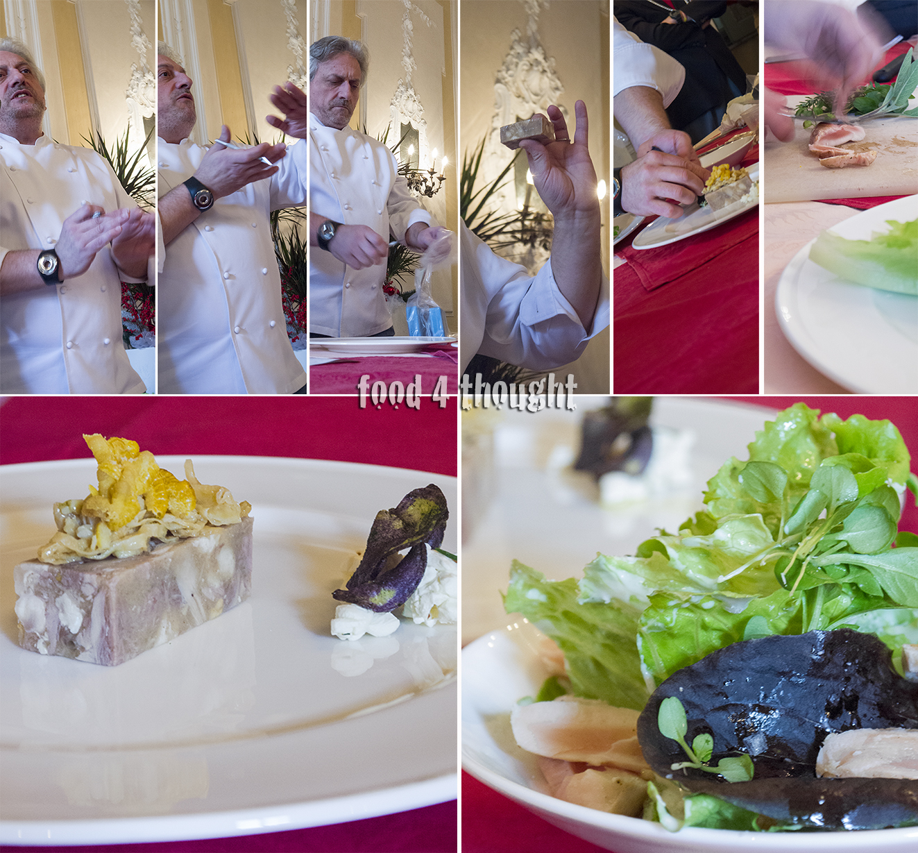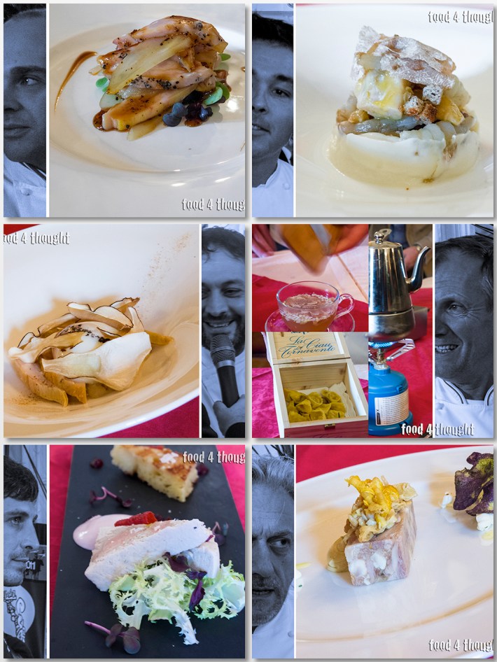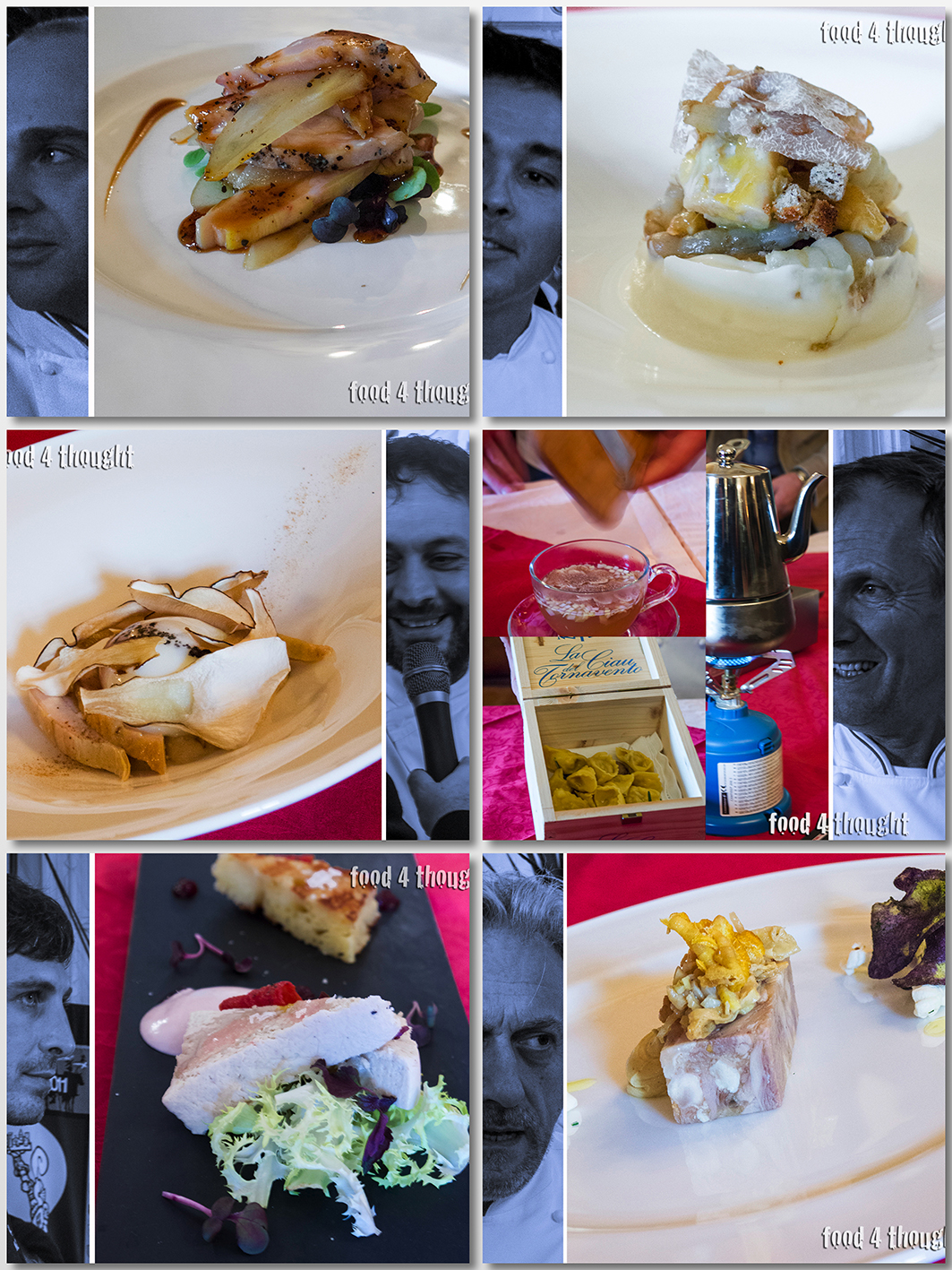 Chef Davide Scabin mentre ci regala la sua istrionica lezione di cucina: mille modi di cucinare il cappone in un unico piatto.