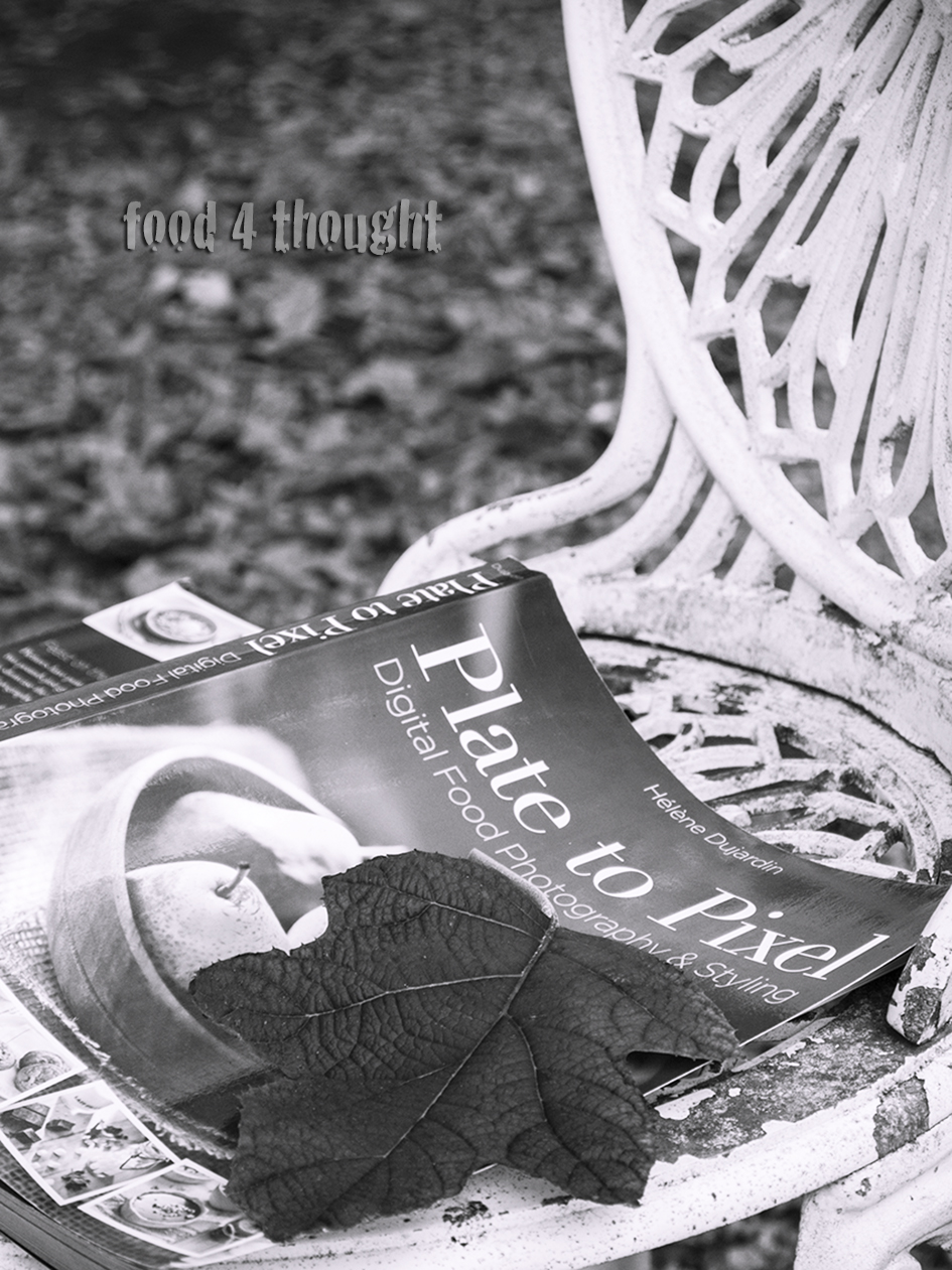 So here I was this afternoon, enjoying the cold sun of a December afternoon in the garden, studying once more my favorite bible on food photography when I thought, hey, here I’ve got the picture for the next Black and White Wednesday.