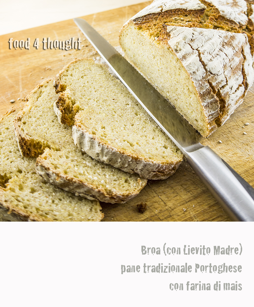 Tornando per ora alla ricetta del Brao, le ricerche che ho fatto in materia mi hanno portato dalla consultazione di un paio di libri (in particolare How to Make Bread di Emmanuel Hadjiandreou) a quella di diversi siti gestiti da blogger di origine Portoghese. Una menzione speciale va a Jeremy di Stir the Pots, e ad Azelia di Azelia’s Kitchen. Il Broa tradizionalmente è un pane a lievitazione diretta che utilizza lievito di birra, io ero però alla ricerca di una via per sfruttare il mio Lievito Madre che ‘pretende’ di essere utilizzato almeno una volta alla settimana. Ed è su questi blog che ho trovato la risposta che, qualche piccola modifica ho poi adottato con ottimi risultati.