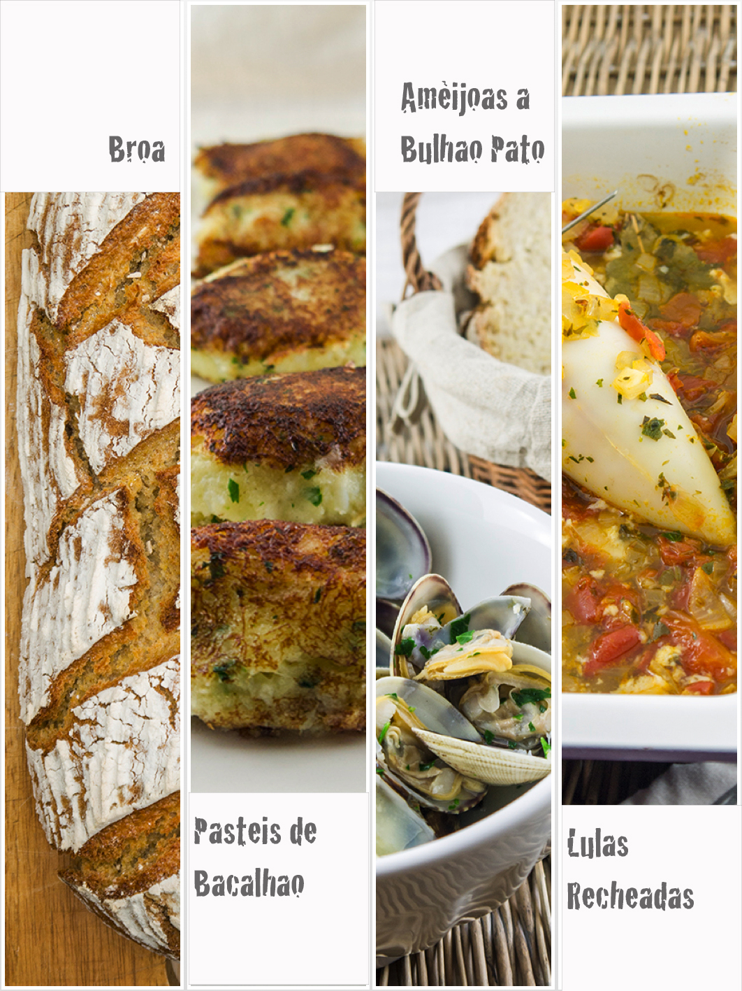 Servito con Amèijoas à Bulhao Pato (Vongole al Vino Bianco – vedi sotto), un piatto che prende il nome dal poeta ottocentesco Bulhao Pato, famoso gourmand, offre un antipasto degno delle tascas e restaurantes tipicos di Lisbona. Piatto semplice, analogo a come noi cuciniamo spesso le cozze. Ma d’altronde la cucina Portoghese non è molto lontana dalla nostra cucina mediterranea. Con molto pesce – inevitabile pensare al Bacalhao e alle sardine – sughi a base di pomodoro e verdure, aromatizzati con erbe fresche: tanto prezzemolo e maggiorana ma non solo. Forse una particolarità può essere quella di unire nello stesso piatto pesce e carne di maiale? Ma di questo parleremo in uno degli altri post dedicati a questo paese …